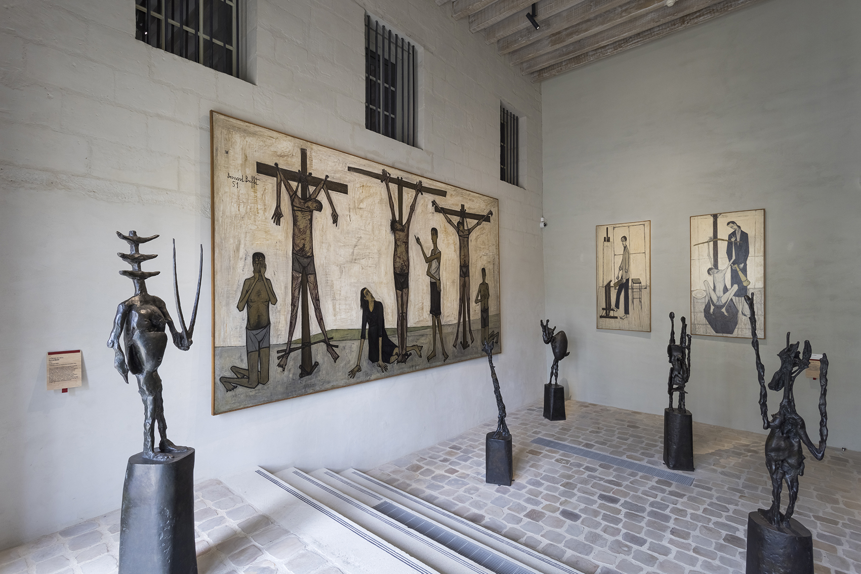 Chaque été, le musée d’Art moderne de Fontevraud organise une grande exposition d’un artiste majeur de l’histoire de l’Art. Celle consacrée à Bernard Buffet permet de découvrir le travail de cet artiste qui a connu un énorme succès auprès du public durant la seconde moitié du 20ème siècle. Le graphisme met en scène un vaste corpus d’archives documentaire (photographies, coupures de presse, livres…) sur les 3 niveaux du musée.