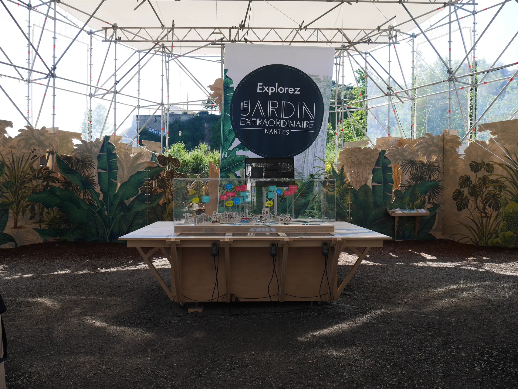 Complètement Nantes, est un festival pluridisciplinaire unique qui propose des soirées, des débats, des rencontres, des activités, des expérimentations et des ateliers. Ici, la demande porte sur la création d’un mobilier pour illustrer les futurs projets de la métropole nantaise. Les illustrations en relief forment un paysage autour de la Loire. La table est réalisé sur mesure et offre différentes fonction pour des utilisations ultérieures.