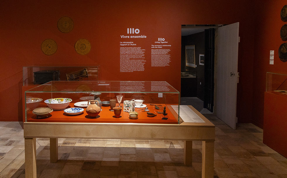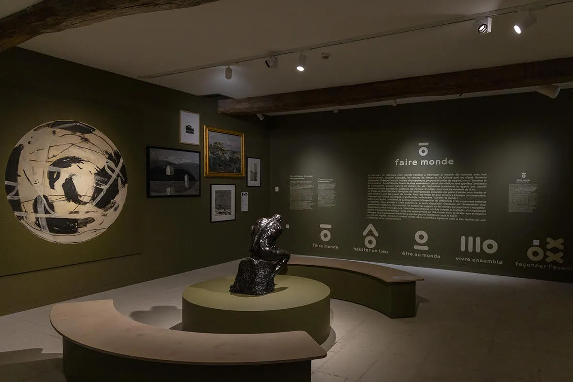 Conçue comme un chemin de vie, l’exposition questionne le rapport que chacun entretient avec le paysage, les végétaux, les animaux, les objets, dans tous les moments de la vie. Le Musée du Véron fait de la discipline de l’anthropologie culturelle une porte d’entrée pour étudier et pour donner à voir des visions du monde. Le graphisme accompagne le parcours avec des pictogrammes, qui rythment le propos et illustrent les séquences. Les grands kakémonos extérieurs sont composées comme des grandes tapisseries colorées.
