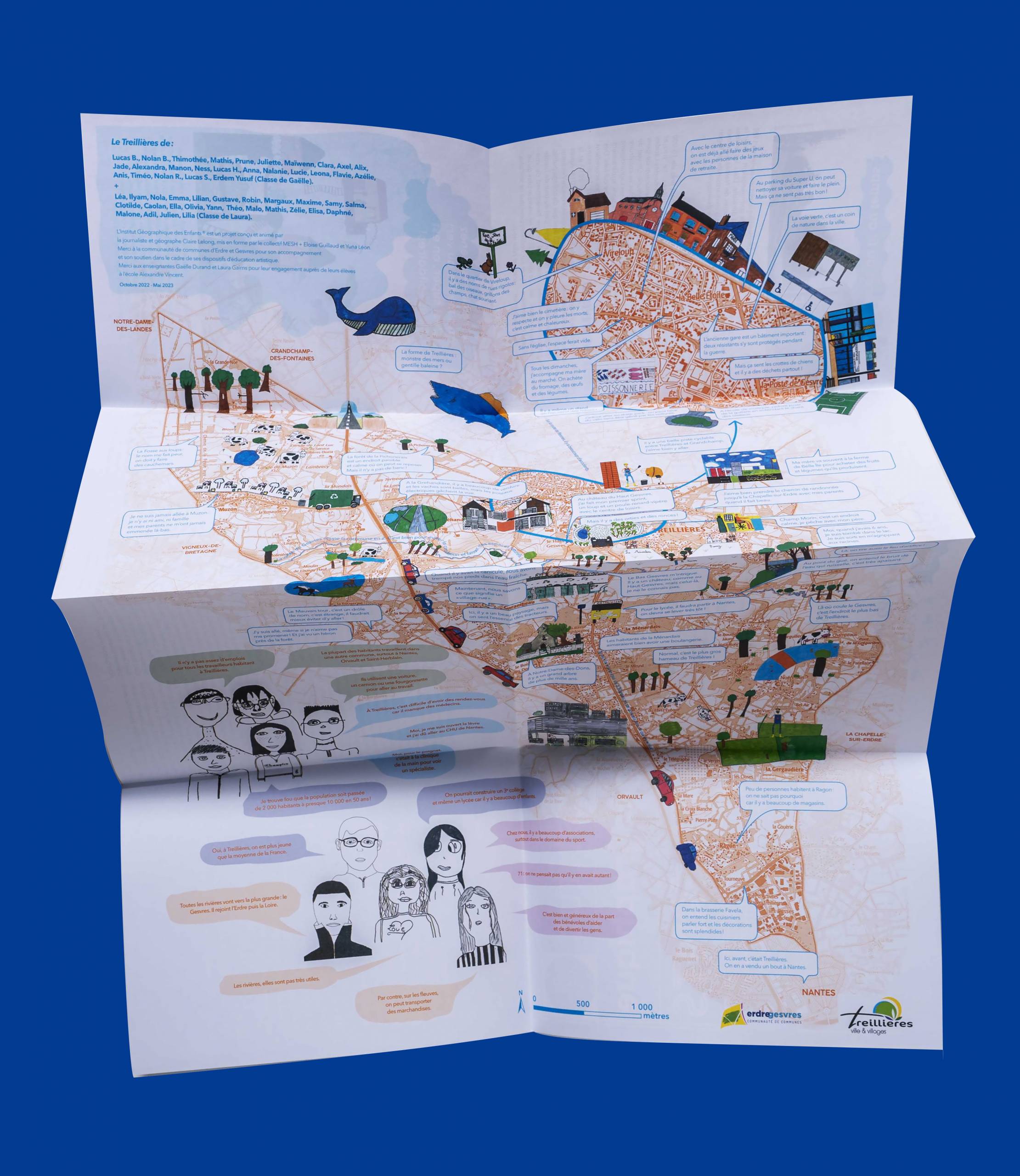 L’Institut Géographique des Enfants est un projet conçu et animé par la journaliste et géographe Claire Lelong. Les enfants des écoles s’intéressent de très près à leur commune en enquêtant sur sa démographie, son histoire, ses particularités géographiques et ses habitants. Mesh crée un carto-journal à partir des données récoltées.