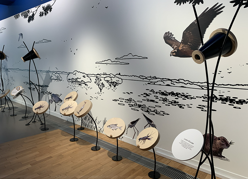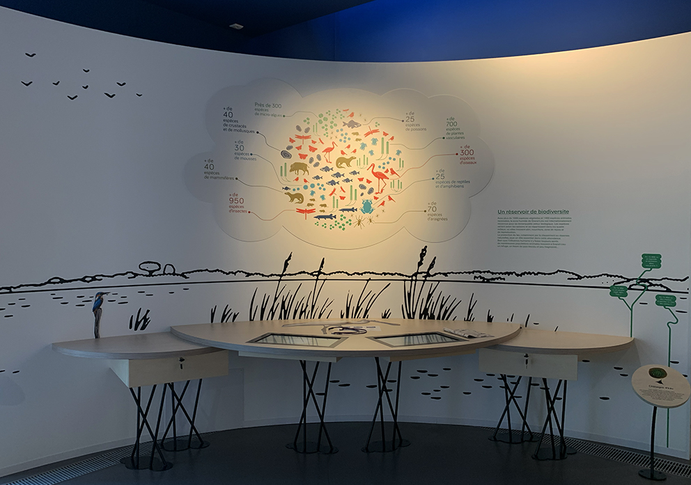 Le lac de Grand-Lieu, est une des plus belles zones humides d’Europe reconnue pour sa richesse biologique exceptionnelle. Avec plus de 270 espèces d’oiseaux, le lac est considéré comme la deuxième réserve ornithologique de France et est soumis à de nombreuses protections règlementaires (Réserve nationale, régionale, Natura 2000…). Le graphisme gère les textes, les infographies (datavisualisations et cartographies) au sein d’un grand travail d’illustration.