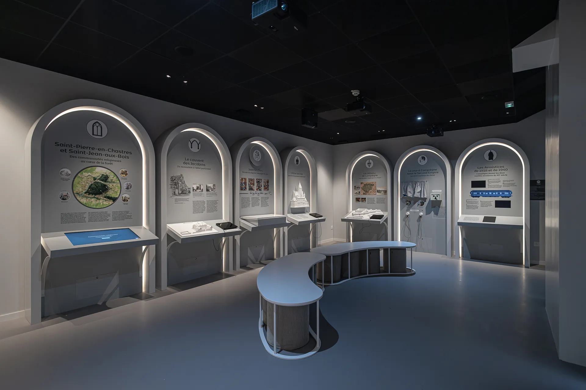 La ville de Compiègne propose aux visiteurs un nouvel espace culturel et touristique imaginé comme un point de départ d’un parcours de découverte du territoire. Le site immersif historique propose un récit sur l’histoire du territoire mis en valeur dans dix stations interactives. Sur ce type de projet, le design graphique est « tout terrain », il s’adapte aux différentes demandes et contraintes : intérieur et extérieur, espace d’exposition, signalétique, fresque murale, livret-jeu…