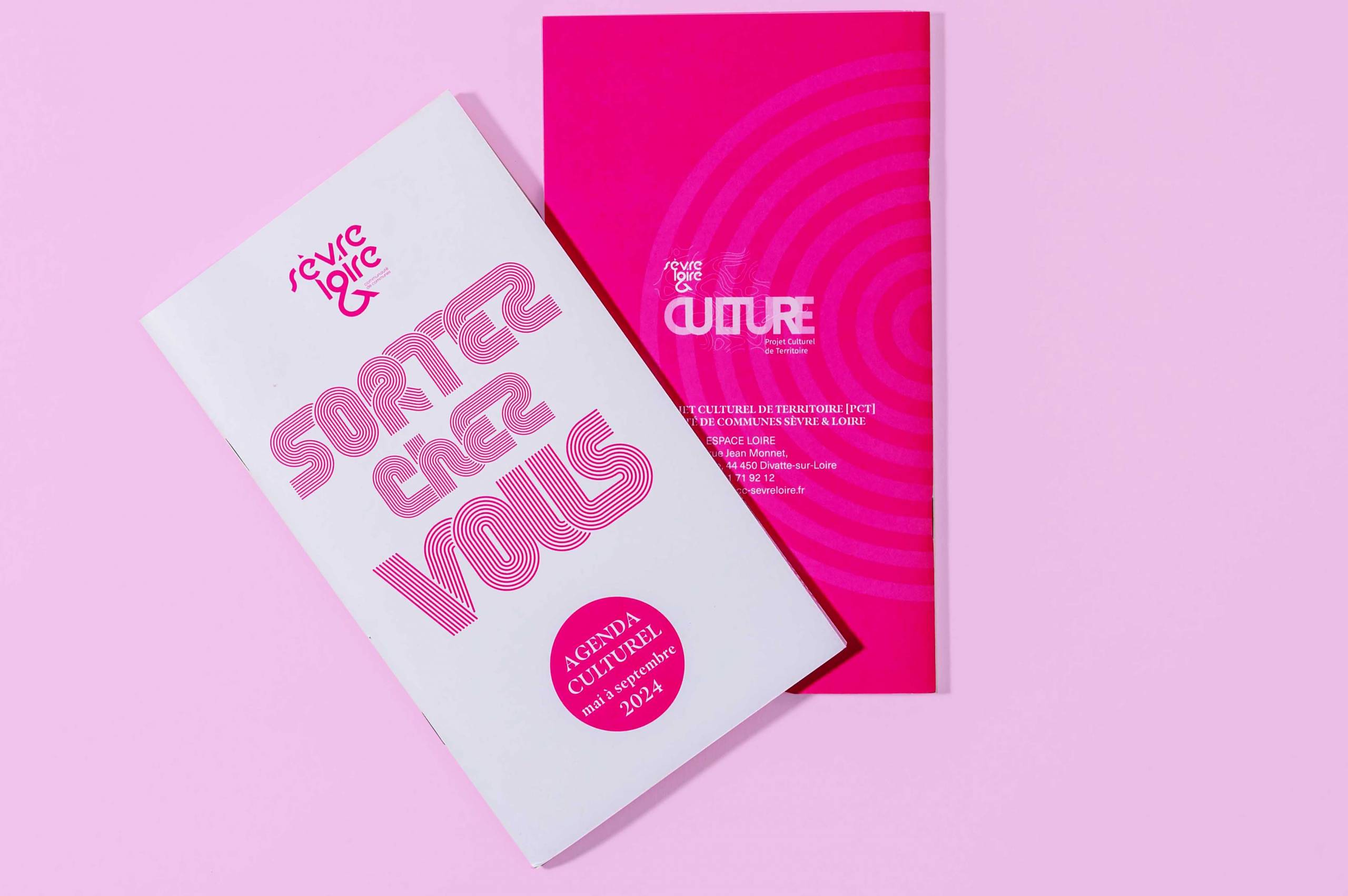 De nombreux acteurs participent quotidiennement à la diversité culturelle locale que ce soit par des professionnels ou des amateurs. Chacun alimente l’offre culturelle autour d’événements, de rencontres, d’ateliers, d’animation où la culture vient à la rencontre de la population. L’agenda « Sortez chez vous » est une plateforme pour les événements locaux qui renforce le tissu culturel de Sèvre & Loire. Ici, le graphisme doit jongler avec des textes et des iconographies très éloignées les unes des autres. Il a pour objectif de les rassembler autour d’un esprit commun, très contemporain, joyeux et accessible.